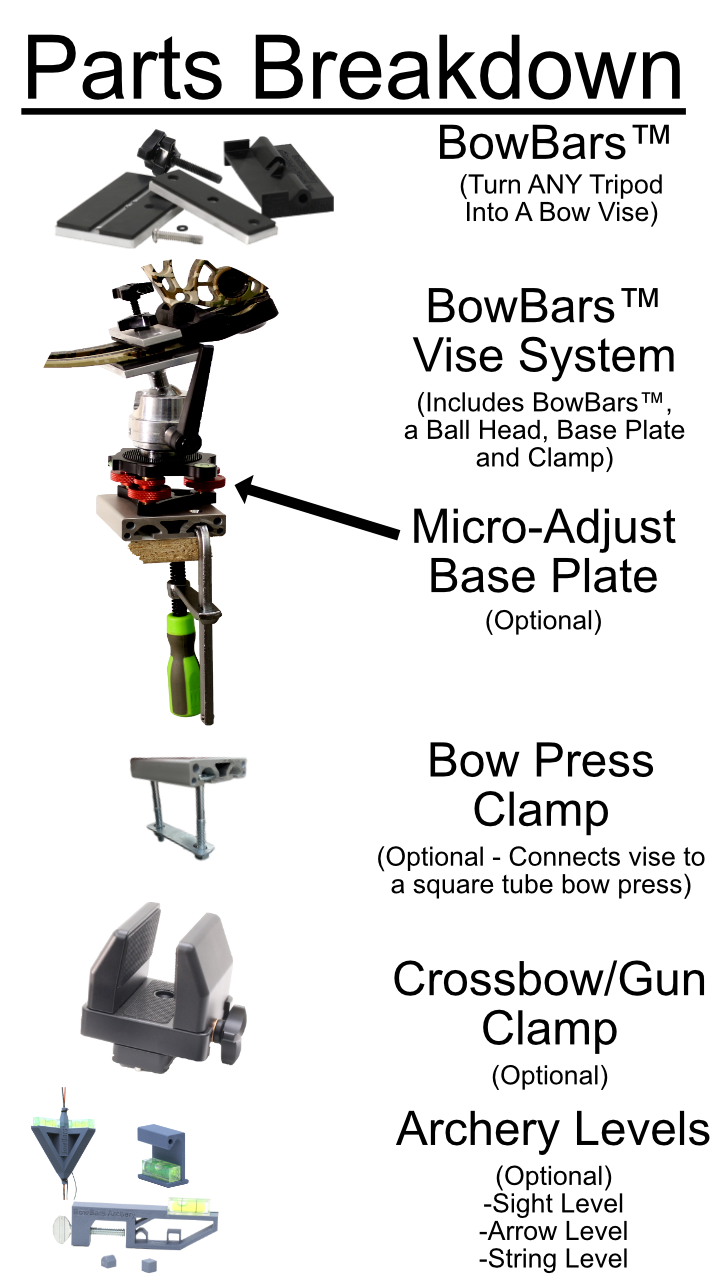 The BowBars™ Vise System is here! With feedback from customers and product testers, we redesigned our ball head mounting system to increase the quality and function of the product while still maintaining an industry low price! (Links below redirect to video outlining each piece.)